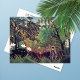 A fine art postcard of the painting by the French artist Henri Rousseau (1844-1910), Exotic Landscape (1910). A Naïve style landscape of the jungle with monkeys swinging from orange trees.