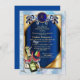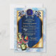 A dream-catcher design with A blue exotic-parrot bird tone feathers on GOLD with a soft blues feather background wedding theme