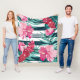 Exotic Pink Flowers Monogram striped Fleece Blanket