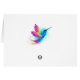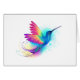 Bright, iridescent, exotic flying hummingbird on white background, painted over with multicolor, watercolor paint. Rainbow hummingbird.
