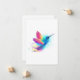 Bright, iridescent, exotic flying hummingbird on white background, painted over with multicolor, watercolor paint. Rainbow hummingbird.