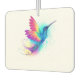 Bright, iridescent, exotic flying hummingbird on white background, painted over with multicolor, watercolor paint. Rainbow hummingbird.