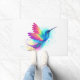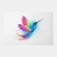 Bright, iridescent, exotic flying hummingbird on white background, painted over with multicolor, watercolor paint. Rainbow hummingbird.