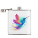 Bright, iridescent, exotic flying hummingbird on white background, painted over with multicolor, watercolor paint. Rainbow hummingbird.