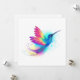 Bright, iridescent, exotic flying hummingbird on white background, painted over with multicolor, watercolor paint. Rainbow hummingbird.