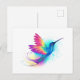 Bright, iridescent, exotic flying hummingbird on white background, painted over with multicolor, watercolor paint. Rainbow hummingbird.