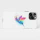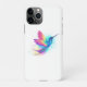 Bright, iridescent, exotic flying hummingbird on white background, painted over with multicolor, watercolor paint. Rainbow hummingbird.