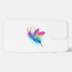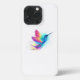 Bright, iridescent, exotic flying hummingbird on white background, painted over with multicolor, watercolor paint. Rainbow hummingbird.