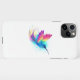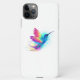 Bright, iridescent, exotic flying hummingbird on white background, painted over with multicolor, watercolor paint. Rainbow hummingbird.