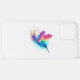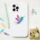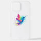 Bright, iridescent, exotic flying hummingbird on white background, painted over with multicolor, watercolor paint. Rainbow hummingbird.