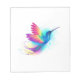 Bright, iridescent, exotic flying hummingbird on white background, painted over with multicolor, watercolor paint. Rainbow hummingbird.