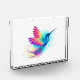 Bright, iridescent, exotic flying hummingbird on white background, painted over with multicolor, watercolor paint. Rainbow hummingbird.