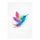 Bright, iridescent, exotic flying hummingbird on white background, painted over with multicolor, watercolor paint. Rainbow hummingbird.