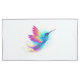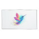 Bright, iridescent, exotic flying hummingbird on white background, painted over with multicolor, watercolor paint. Rainbow hummingbird.