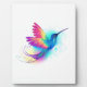 Bright, iridescent, exotic flying hummingbird on white background, painted over with multicolor, watercolor paint. Rainbow hummingbird.
