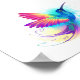 Bright, iridescent, exotic flying hummingbird on white background, painted over with multicolor, watercolor paint. Rainbow hummingbird.