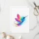 Bright, iridescent, exotic flying hummingbird on white background, painted over with multicolor, watercolor paint. Rainbow hummingbird.