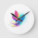 Bright, iridescent, exotic flying hummingbird on white background, painted over with multicolor, watercolor paint. Rainbow hummingbird.