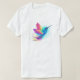 Bright, iridescent, exotic flying hummingbird on white background, painted over with multicolor, watercolor paint. Rainbow hummingbird.