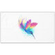 Bright, iridescent, exotic flying hummingbird on white background, painted over with multicolor, watercolor paint. Rainbow hummingbird.