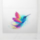 Bright, iridescent, exotic flying hummingbird on white background, painted over with multicolor, watercolor paint. Rainbow hummingbird.
