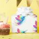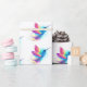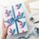 Bright, iridescent, exotic flying hummingbird on white background, painted over with multicolor, watercolor paint. Rainbow hummingbird.