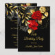 Exotic Red Rose Black Floral Gold Birthday Party Invitation
