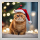 Cute exotic shorthair ginger cat wearing a Santa hat.