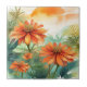 Exotic Tithonia Tropical Watercolor Ceramic Tile