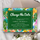 Tropical change of date card to announce the new dates of your postponed wedding.