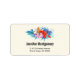 Address labels with a vibrant and beautiful tropical flower bouquet. Orchids, hibiscus and tropical leaves. Pink, turquoise, red and blue colours.