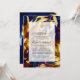 Online long distance virtual wedding ceremony invitation featuring a luxurious jungle pattern in hues of blue, burgundy and gold.