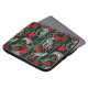 An exotic and unique tropical pattern featuring leopards in the jungle with palms and foliage and red roses over a contrasting black background. Rich vibrant colours of red, black, green and beige make this design pop with style. A diamond shape frame surrounds a monogram that may be personalised with your desired initial.