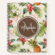 An exotic tropical pineapple floral pattern standard size notebook that can be personalised. Add your name and monogrammed initial to the dark brown rounded hexagon badge to make it uniquely yours. This is part of the Tropical Pineapple Floral Emperador Monogram Collection.