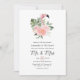 Elegant pink flamingos and flowers wedding invitation card customisable to your specifics.