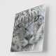 This is a wall clock with a stunning nature photograph of a white snow leopard wildcat.
