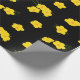 Bold tropical print gift wrap featuring bright yellow Hibiscus flowers on a black background.