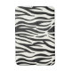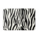 An exotic zebra skin pattern bath mat for a zebra themed bathroom. Black and tannish white lines creating a classic wildlife vibe.