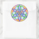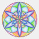 It's round. It's a sticker. It's beautiful. It's got Lemurian Blue artwork on it.