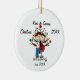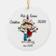 A cute ornament with a stick figure expectant couple with text that reads We're Expecting! You can easily add your names and the current year!