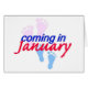 Coming in JANUARY expecting baby babies women mother father mum dad son daughter twins infant PJ pregnantPregnancy birth due boulder Card
