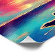 Immerse yourself in this stunning and vibrant artwork that captures the essence of a perfect evening by the pier. With a breathtaking blend of warm oranges, pinks, and purples, this piece brings the tranquil beauty of sunset to life. Watch as the gentle reflections dance on the water, seagulls soar through the sky, and sailboats drift in the distance, all illuminated by the soft, glowing light effects.