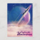 Explore the Universe vintage sci-fi poster of a space plane flying out of a planet's atmosphere.