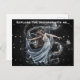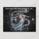 Postcard with vintage image of a fairy against the solar system and the words, " explore the Universe with me".