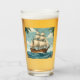 It is a transparent glass cup with a picture of an exploration ship.