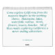 Come explore California from the majestic heights to the soothing shores. Mountain, lakes, waterfalls, valleys. Birds, flowers, insects, beaches. All of these make exploring California a never ending adventure. This calendar includes photos from Sequoia National Park, Piedras Blancas, Mule Peak Lookout in the Sequoia National Forest, Tokopah Falls, Lake Tahoe and more.