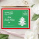 Express Delivery from North Pole funny Christmas envelope. Cute Holiday mailing template design for special delivery postal letter to or from Santa Claus. Red and green or custom colours with Christmas tree drawing.