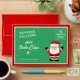 Express Delivery from Santa Claus to North Pole envelope. Cute Holiday mailing template design for special delivery letter to or from Santa. Red and green or custom colours with jolly Santa Claus cartoon.