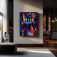 This striking abstract cat artwork blends expressionist textures and geometric patterns, creating a bold and captivating composition. The cat’s piercing golden eyes contrast against a vibrant mix of deep blues, fiery oranges, and electric pinks, giving it a mysterious yet playful presence. A tribute to feline grace and modern art, this piece is perfect for cat lovers, contemporary art enthusiasts, and those seeking a bold, eye-catching decor statement.