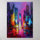 Expressionist Tokyo Skyline Neon Night Cityscape Poster